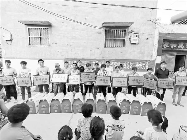 近日,在全市“五城联创”攻城拔寨关键节点,川汇区区委驻华耀城办事处文庄行政村综合整治工作组与该村帮扶单位区残联联合开展文明家庭评选活动,为“五城联创”营造浓厚的社会氛围。图为文明家庭、好媳妇、好婆婆评选活动现场。