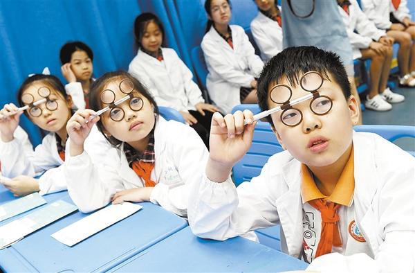 9月10日,福建省邵武市实验小学学生在近视防控实践课上开展眼睛灵敏度调节训练。为提高学生的自觉爱眼护眼意识,科学保障学生的视觉健康,福建邵武市教育局自2019年开始在全市城乡114所中小学、幼儿园开设近视防控课程,并纳入当地体育与健康常态化教学体系。新华社发
