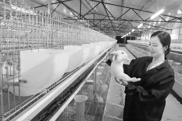 扶沟县曹里乡辰阳牧业的防疫员正在对肉兔进行健康检查。该企业实现了“秸秆养殖、废物发酵还田”循环利用,吸收26名当地群众务工,其中8名贫困户月收入3000元,实现一人就业,全家脱贫。 谷志方 摄