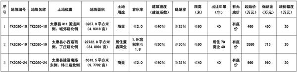 经太康县人民政府批准,太康县自然资源局决定以网上拍卖方式拟出让以下3(幅)地块的国有建设用地使用权,并委托周口市公共资源交易中心组织实施。现将有关事项公告如下: