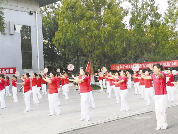 9月20日,2020年周口市“全民健身与‘创文’同行”柔力球展演交流活动在川汇区广场举行。图为展演现场。 记者 窦娜 摄