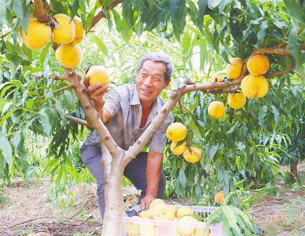 在扶沟县包屯镇的黄桃基地,一个个金色的黄桃缀满枝头,丰收的喜悦洋溢在农民的脸上。包屯镇财政所对林果业提供资金、技术帮扶,打造环境优美的乡村旅游新亮点,促进了农民增收。 谷志方 摄
