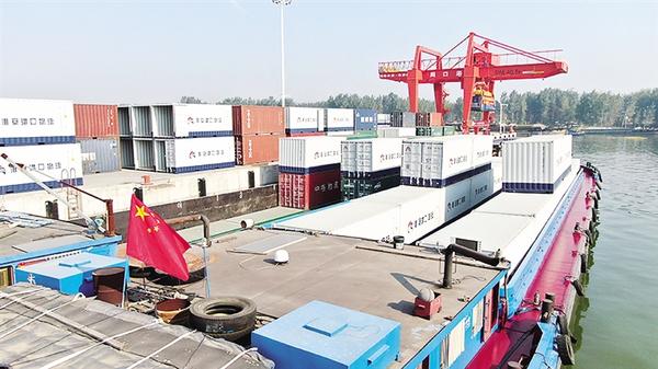 随着9月25日周口港至大丰港、上海港集装箱航线的开航,周口港已开通至淮安港、太仓港、连云港港、大丰港、上海港5条集装箱航线,连通了长江经济带、淮河生态经济带、环渤海经济圈,标志着“豫货出海”内河航运集装箱航线组网完成,必将为地处中原的河南全面融入“21世纪海上丝绸之路”打开更加开阔便捷的开放通道。