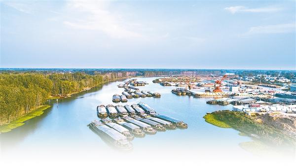 江河入海,流淌千年文脉;港通天下,货运五洲四海。