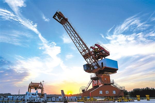 周口港首期项目于2005年12月建成,2006年4月投入使用。目前看到的是2017年8月开工、2020年9月主体完工并投入使用的港口中作业区部分。2019年6月6日,随着周口港至淮安港集装箱货运航线的开通,特别是沙颍河周口以下的89公里,达到了四级内河航道标准,可常年通行2000吨级单船和万吨级拖船,周口港已经成为内陆大省河南通江达海的“黄金水道”。 买付民 摄