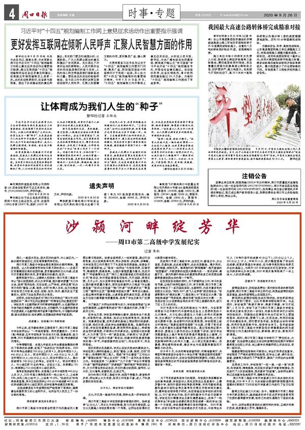 周口市第二高级中学开学复课工作引来央视的关注和报道,2020年4月21日央视综合频道和新闻频道并机直播的《朝闻天下》对该校开学复课工作进行了全方位报道。