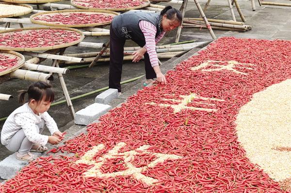 9月25日,呈坎古村村民正在晒场上晾晒农作物。
