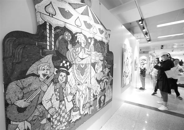 9月26日,参观者在作品展上欣赏作品。当日,由中央美术学院、山东省文学艺术界联合会主办的2020全国大学生暨青年艺术家年度大展在山东省青岛市即墨区德馨艺术中心开幕。新华社发