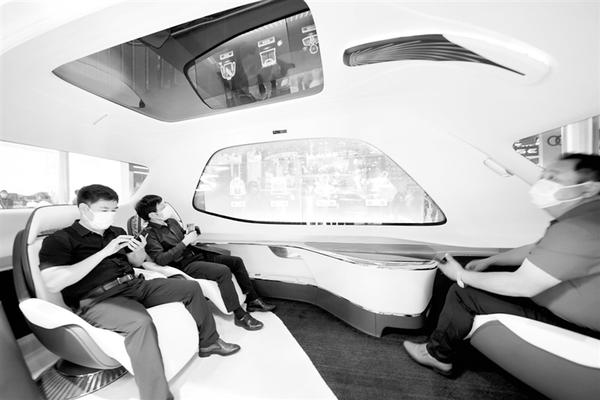 9月26日,观众在一汽红旗展台体验明年7月即将量产的红旗智能2.0小巴。当日,2020(第十六届)北京国际汽车展览会开幕。本次车展共分为整车展区和零部件及新能源展区,分别在北京中国国际展览中心新馆和老馆举行。新华社记者 陈建力 摄