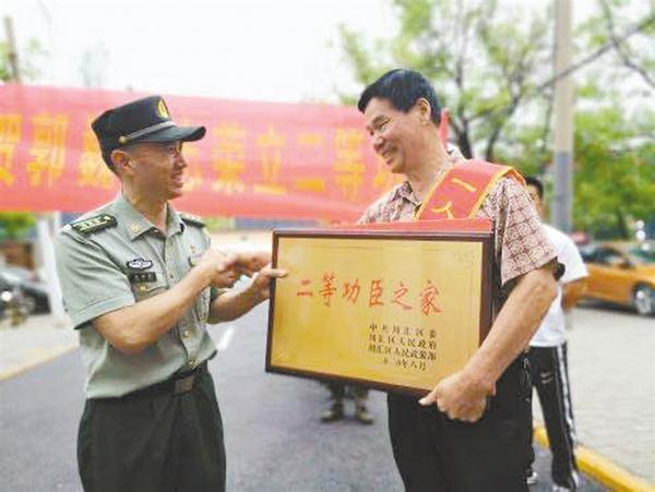当天9时许,陈继芳、陈伟一行来到人和办事处德化社区现役军人郭巍家中,家属院门口顿时热闹起来,一时间锣鼓喧天,街坊邻居纷纷围了过来,向郭巍的父亲郭风清表示祝贺。在郭巍家中,军地领导与郭风清拉家常、话军功,了解其家庭生活情况,送上立功奖章、证书和慰问金,表达了党和政府、军队以及家乡人民对军人、军属的亲切关怀和问候。陈继芳表示,将做好保障工作,倾情关注并全力解决军属在生活中遇到的实际困难,让现役军人安心在部队服役。