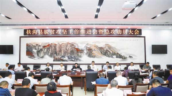 本报讯 (记者 李一 文/图) “要以习近平总书记关于扶贫工作的重要论述为根本遵循,排除一切杂念、扫清一切障碍、扛牢一切责任、凝聚一切力量,举全县之力夺取总攻胜利、打赢收官之战……”9月24日,扶沟召开脱贫攻坚工作推进会暨总攻动员会(如图)。县领导张颖波、崔卫国、姜永来、常青、冯涛、段然、朱良杰、王霄灵、赵红亮、闫忠玉、曹来凌等出席会议。会议由县长崔卫国主持。