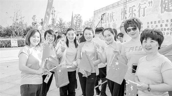 本报讯(记者 普淑娟 文/图)为庆祝中华人民共和国成立71周年,积极响应全民健身国家战略,倡导健康文明的生活方式,昨日,由市总工会、团市委、市妇联、市委编办、市大数据局、市行政服务中心等多家单位联合举办的2020年“迎国庆、快乐行”健步走活动在沙颍河畔铁路风情广场举行。我市260余名健步走爱好者踊跃参加。