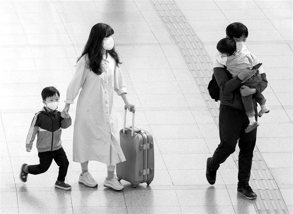 9月30日,在韩国首尔站,戴口罩的一家人准备上车回家过节。每年的农历八月十五也是韩国的中秋节,被称为“秋夕”,是韩国最重要的传统节日之一。今年的韩国秋夕假期为9月30日到10月4日。按照传统,人们要回家与亲人团聚,拜祀祖先,祭扫坟墓等。因为疫情的原因,尽管韩国政府呼吁今年秋夕假期尽量避免返乡过节,但依然有不少群众选择返乡。新华社发