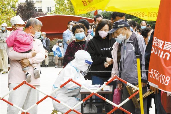 10月13日,市民在青岛市市北区合肥路街道桦川路社区检测点进行核酸检测采样。当日,青岛市卫生健康委员会通报,截至10月13日8时,青岛市已采样3078528份进行核酸检测,已出结果1107883份,除已公布的确诊病例和无症状感染者外,未发现新的阳性样本;在机检测未出结果样本1970645份,检测结果将及时公布。新华社发