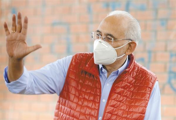 10月18日,在玻利维亚首都拉巴斯一处投票站,玻利维亚公民社群党候选人、前总统卡洛斯·梅萨向人们挥手致意。