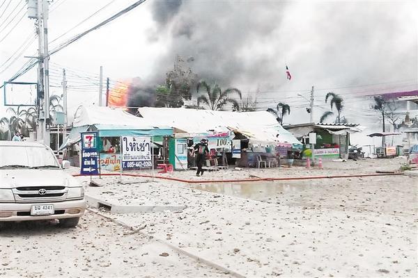 这是10月22日拍摄的泰国曼谷东郊邦波地区天然气管道爆炸现场。泰国首都曼谷市郊一天然气管道22日发生爆炸,造成3人死亡、28人受伤。警方表示,爆炸可能是一台挖掘机未经许可在天然气管道附近施工引发的,事故具体原因仍在调查中。