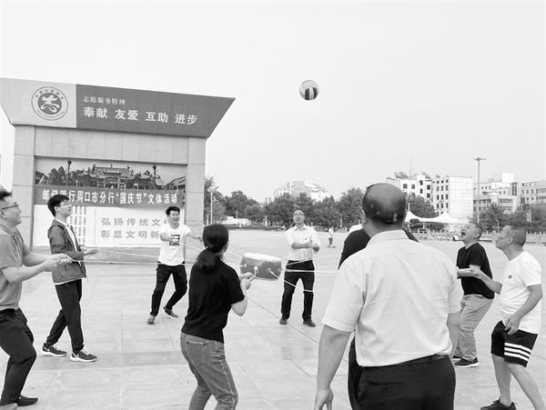 本报讯(记者 韩志刚 通讯员 郭哲一 文/图)9月24日,在国庆节即将来临之际,为营造全行欢乐和谐的节日氛围,展现员工锐意进取、朝气蓬勃的精神风貌,邮储银行周口市分行工会在五一文化广场举行职工国庆节文体活动。