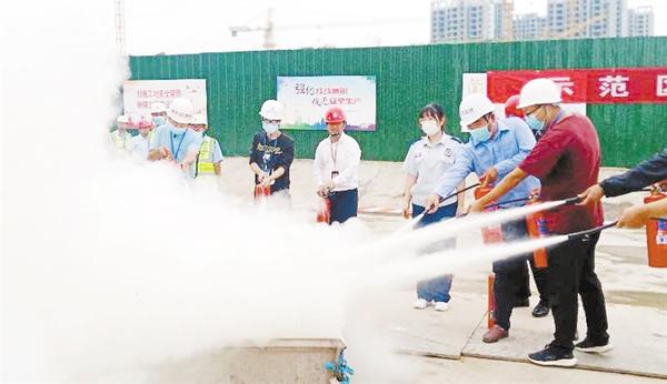 近日,在市城乡一体化示范区建筑行业安全文明施工暨双重预防体系建设现场观摩会上,来自各个建筑工地的工人代表在消防员的指导下,认真学习并亲自尝试操作灭火器进行灭火,不断提升自身的应急救援能力。记者 张志新 摄