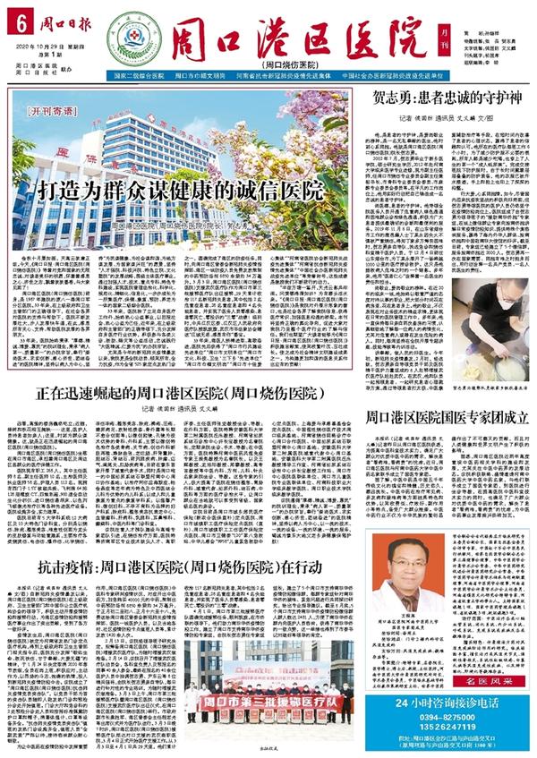 远看,高耸的楼房巍然屹立;近瞧,绿树和秋花相互掩映……这里,医护人员待患者如亲人;这里,时刻为群众谋健康。这,就是正在迅速崛起的周口港区医院(周口烧伤医院)。