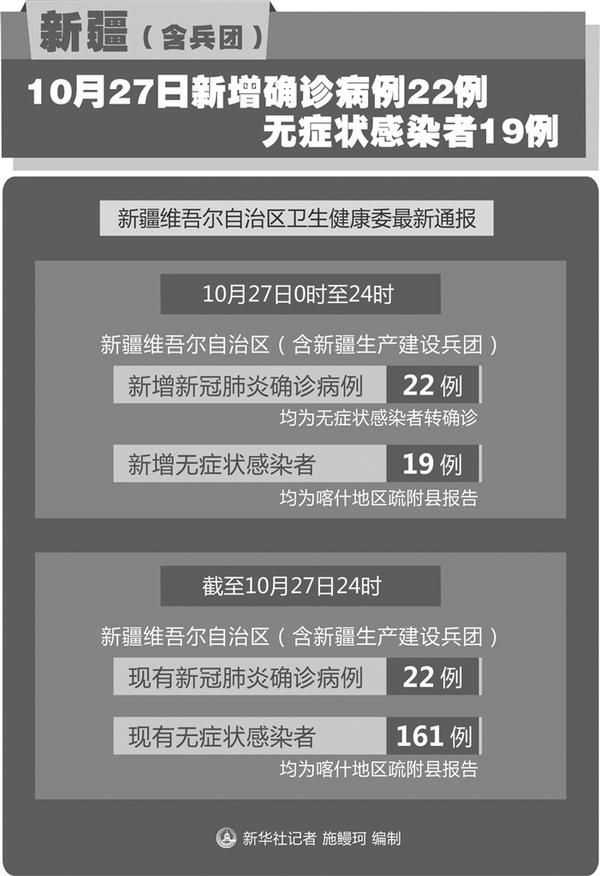 新疆(含兵团)10月27日新增确诊病例22例 无症状感染者19例