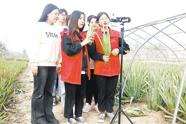 川汇区华耀城街道办事处葛湾行政村的村民靠种植芦荟为生,近年来,随着种植户的增多,芦荟出现滞销现象。河南省水利水电学校的老师和学生得知这一情况后,利用直播,在田间地头当起了“乡村助农代言人”帮助农户网上销售芦荟。 记者 杜林波 摄
