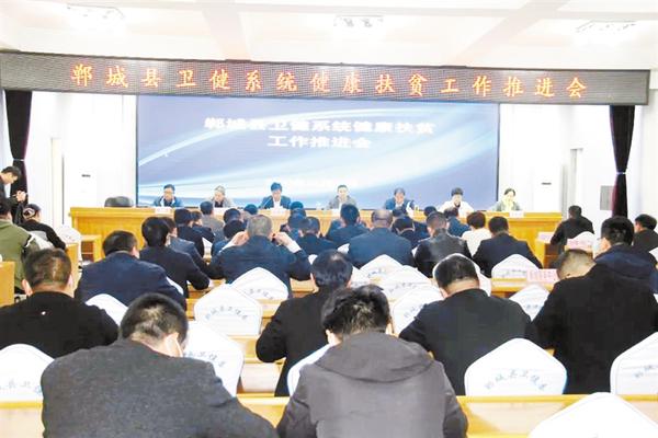 本报讯(记者 徐松 通讯员 侯同廷 文/图)10月31日下午,郸城县卫健系统健康扶贫工作推进会在县卫健委召开。各医健集团总医院院长和分管副院长、各乡镇卫生院院长和分管副院长、县疾控中心、县120指挥中心主要负责人、县卫健委派驻各行政村第一书记、县卫健委健康扶贫办公室全体人员参加会议。