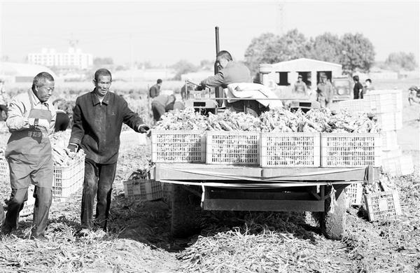 11月3日,在河北省赵县韩村镇,赵县天舟农作物种植专业合作社的农民将生姜装车运输。近日,河北省石家庄市赵县韩村镇种植的生姜进入成熟收获期,当地村民在田地里起姜、拾筐、装车,一派繁忙景象。近年来,河北省赵县结合市场需求,引导农民种植生姜近2000亩,拓宽农民的致富渠道。新华社发