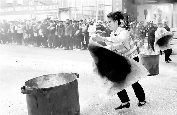 服饰市场联动演练保平安 11月6日,员工使用灭火毯进行灭火演练。当日,上海市公安局虹口分局北外滩派出所联合物业、安保及百余名商铺店主,在上海市最大的服饰批发市场七浦路兴旺服饰市场举行消防联动演练。演练模拟服装摊位发生火情,工作人员在消防安保人员协助下控制火情、有序撤离、安全逃生。新华社发