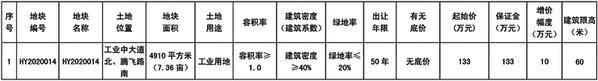 五、拍卖时间及网址拍卖报价时间为 HY2020014地块: 2020年12月4日10时。