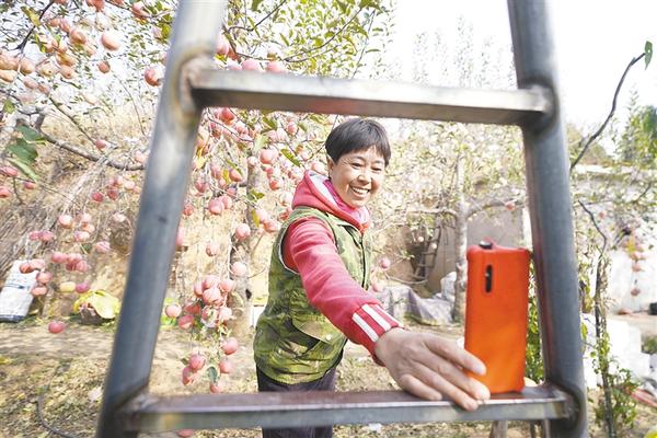 11月13日,农民刘海燕在果园里拍摄短视频。刘海燕的网名叫“丑媳妇”,她在短视频平台上销售乡亲们的苹果,成了远近闻名的“网红”。近年来,邢台市内丘县围绕太行山区特色农产品资源,扶持培育中小型电商企业、电商户和农民“网红”直播带货,加速了农产品的销售,也使新鲜农产品直供城市餐桌。