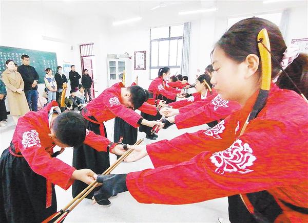 近年来,西华县皮营学校把礼乐文明教育融入日常教学中,让学生知礼、懂礼、明礼。图为礼射兴趣班的小朋友进行礼射表演。记者 牛思光 摄