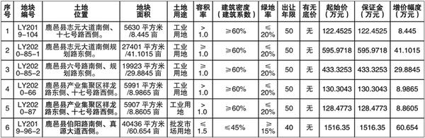 经鹿邑县人民政府批准,鹿邑县自然资源局决定以网上挂牌方式出让以下6(幅)地块的国有建设用地使用权,具体组织实施由鹿邑县公共资源交易中心承办,现将有关事项公告如下。