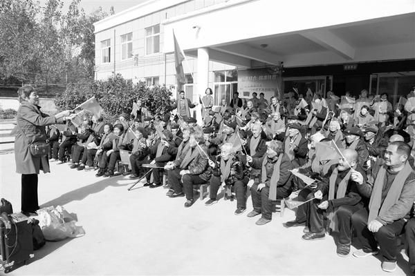 商水县依托各乡镇敬老院、卫生院认真开展医养结合工作,使全县特困老人集中生活、统一医疗,实现老有所养、老有所医、老有所乐,让他们过上幸福晚年生活。图为练集镇医养结合敬老院在组织院民唱红歌、看演出。 记者 付永奇 摄