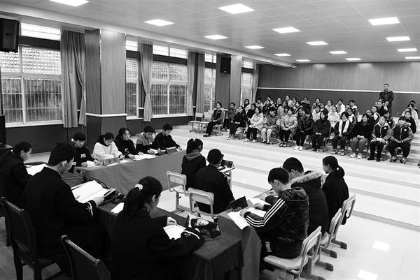 这是12月2日拍摄的校园模拟法庭“庭审”现场。