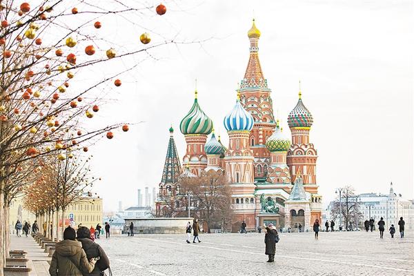 这是12月2日在俄罗斯首都莫斯科拍摄的圣瓦西里教堂与新年装饰。近日,莫斯科市中心布置了各种装饰,迎接新年的到来。新华社发