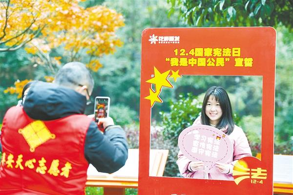 12月4日,在长沙市天心区暮云街道丽发社区,居民在学习相关法律法规知识后拍照打卡。
