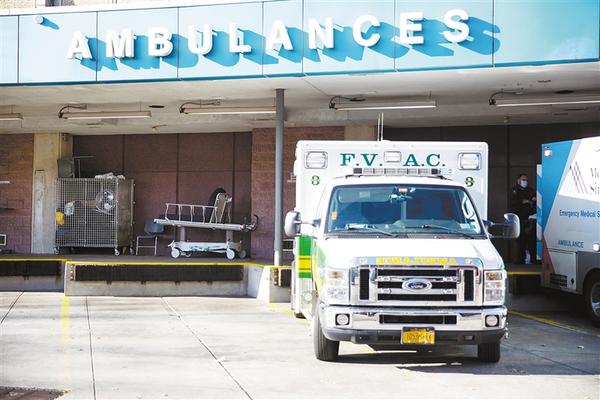③ 12月3日,在美国纽约,救护车停在一家医院的急诊室外。