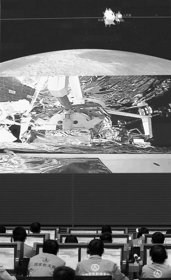 记者从国家航天局获悉,12月6日5时42分,嫦娥五号上升器成功与轨道器返回器组合体交会对接,并于6时12分将月球样品容器安全转移至返回器中。这是我国航天器首次实现月球轨道交会对接新华社记者 金立旺 摄
