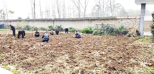 12月6日上午,初冬的阳光照得沈丘县卞路口乡敬老院暖暖的,院里的老人们吃过早饭,兴高采烈地拿起铁锨、抓钩等工具,来到院中的红薯地里收红薯。老人们一抓钩下去就刨出了又大又好的红薯,他们的脸上堆满了笑容。图为老人正在刨红薯。记者 韦伟 摄