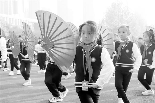 近日,周口市文昌小学成功举行了太极功夫扇展演活动。据了解,太极功夫扇是周口市文昌小学“阳光体育大课间”活动的一个重要项目,它吸取中华传统武术精华,融合太极拳的动作和不同风格的武术动作,将扇子与太极灵活结合。