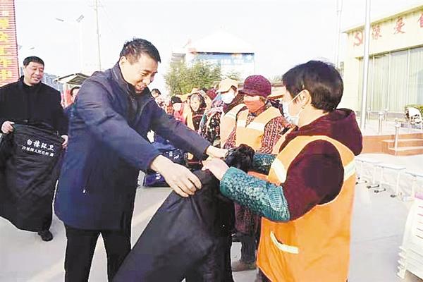 12月6日,白楼镇召开冬季为环卫工人送温暖暨先进环卫工人表彰大会。在表彰大会上,该镇共有10名先进环卫工人受到表彰,每人获奖500元,同时向114名环卫工人发放暖心棉衣。记者 侯俊豫 摄