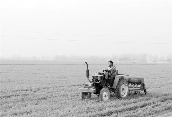 12月13日,扶沟县崔桥镇毛寨村一农民在给自家小麦追肥(如图)。目前,该县广大农民朋友正在农技人员的指导下积极加强小麦田管,抓住良好时机给小麦追肥,力争明年夏收多打粮、打好粮。 记者 金月全 通讯员 卢付昌 摄