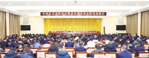 本报讯 (记者 金月全 文/图) 12月18日,扶沟县召开省委巡视反馈意见整改落实情况通报会(如图)。目的是让社会了解扶沟县巡视整改工作完成情况,进一步加强党内监督,确保整改工作的实效性和严肃性。县委书记张颖波出席会议并讲话。县长崔卫国主持会议。