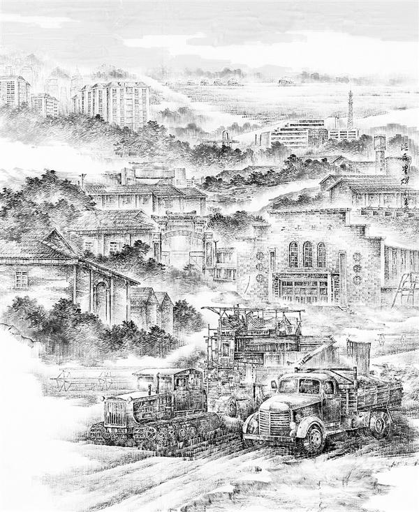 “这两幅作品无论从构思上,还是创作表现手法上,都是一次新的突破。平时我的作品以山水画为主,平原题材作品创作较少,且都是些小幅画作,如此大幅的运用山水画技法反映时代特色的建筑物和城镇,是首次尝试。”刘森说。