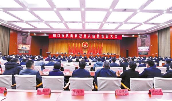 会议宣读了《中共周口市委、周口市人民政府关于表彰周口市抗击新冠肺炎疫情先进个人和先进集体的决定》《中共周口市委关于表彰全市新冠肺炎疫情防控工作优秀共产党员和先进基层党组织的决定》《中共周口市委、周口市人民政府关于表扬全市疫情防控工作先进单位和先进个人的通报》。市领导为受表彰的先进个人和先进集体代表颁奖。