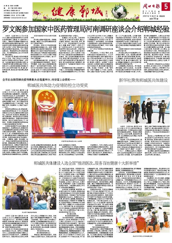 本报讯 (记者 徐松 通讯员 侯同廷 文/图)12月16日,新华社河南分社副总编李亚楠一行到郸城县采访调研医共体建设推进情况。郸城县卫健委党组书记、主任付登霄,县医保局长黄玉珍,县卫健委副主任刘清俊、肖俭等参加调研(如图)。