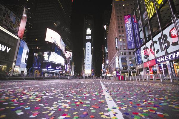 受新冠疫情影响,2021年纽约时报广场跨年庆祝活动不对普通观众开放,只通过电视和线上转播,以避免人群聚集。