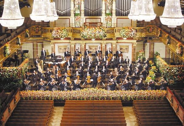 1月1日,维也纳爱乐乐团在奥地利维也纳金色大厅新年音乐会上演奏。