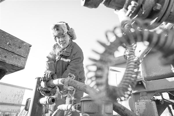 大庆油田1205钻井队钻井工人在野外钻井平台作业(2021年1月7日摄)。大庆油田1205钻井队2020年累计钻井进尺突破10万米,这支“铁人”王进喜带过的队伍实现了年钻井进尺突破十万米“四连冠”的目标,历史累计进尺达到314万米,相当于钻透了355座珠穆朗玛峰。新华社记者 王松 摄