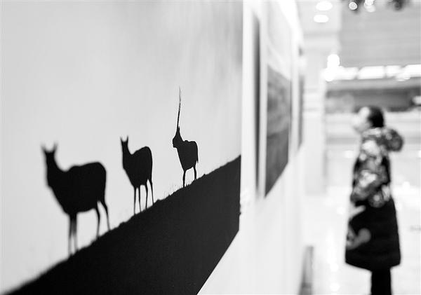 1月8日,观众在摄影展上观看展出的野生动物摄影作品。当日,“我们彼此守望——王莅翔野生动物生态摄影作品展”在吉林省图书馆开幕,共展出43幅野生动物主题的摄影作品,旨在通过影像的力量呼吁保护野生动物,助力生态文明建设。新华社记者 许畅 摄